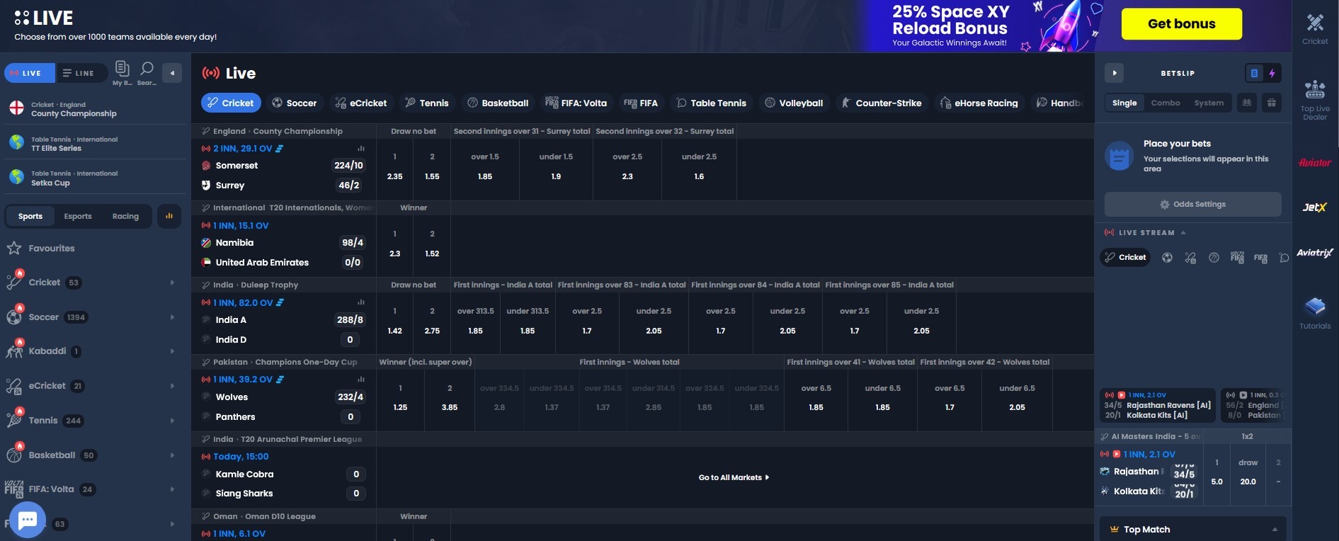 One of the popular sports in India. Bet on big and small competitions like the Indian Premier League, Cricket World Cup, PSL, Global T20, and many more.